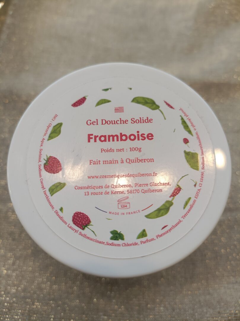 Gel douche solide framboise fabriqué à Quiberon en Bretagne 100gr