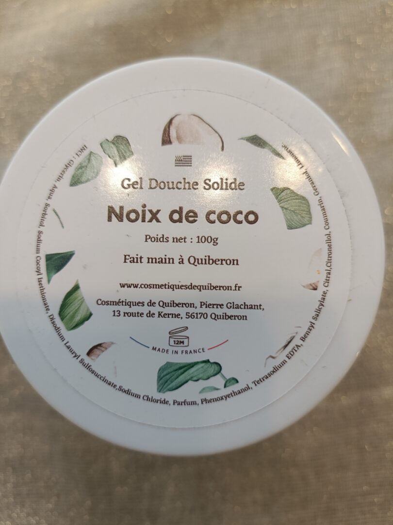 Gel douche solide noix de coco fabriqué en Bretagne à Quiberon 100gr